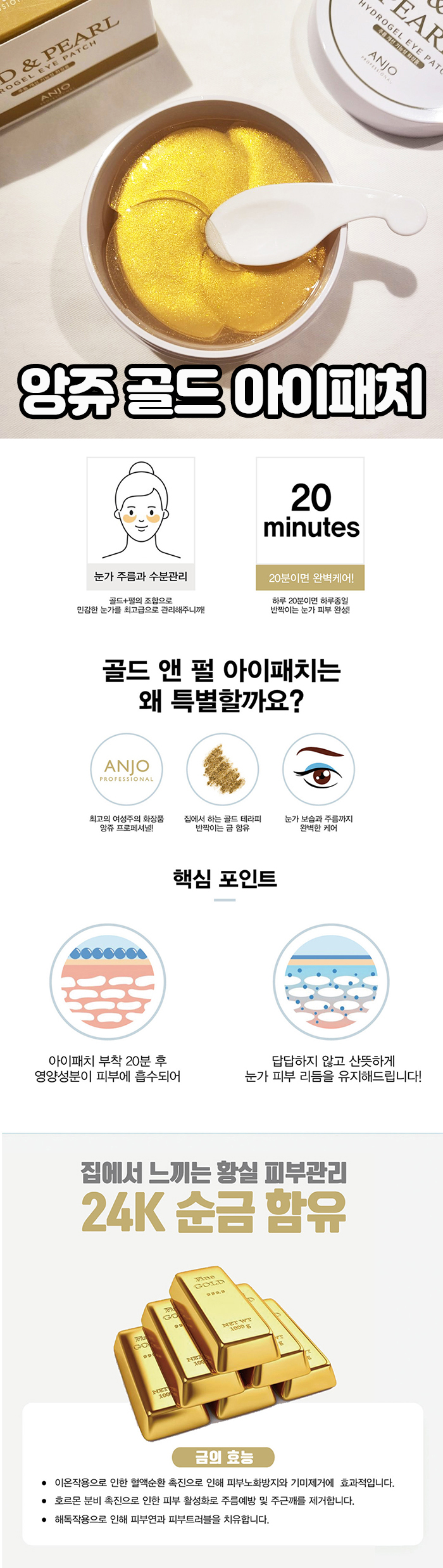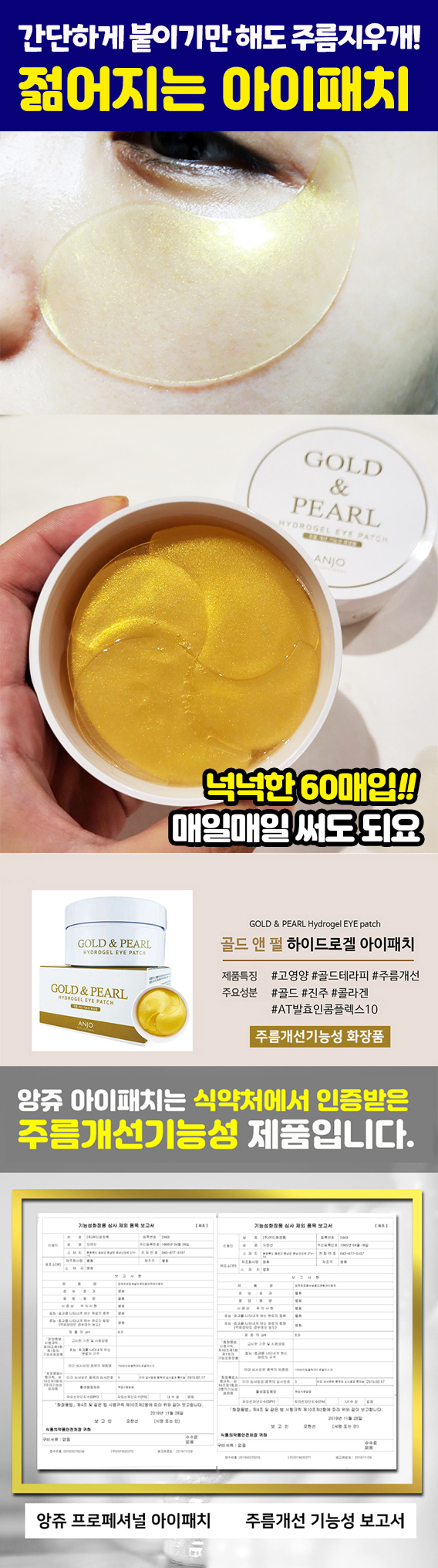 [앙쥬] 24K 골드&펄 아이패치 60매