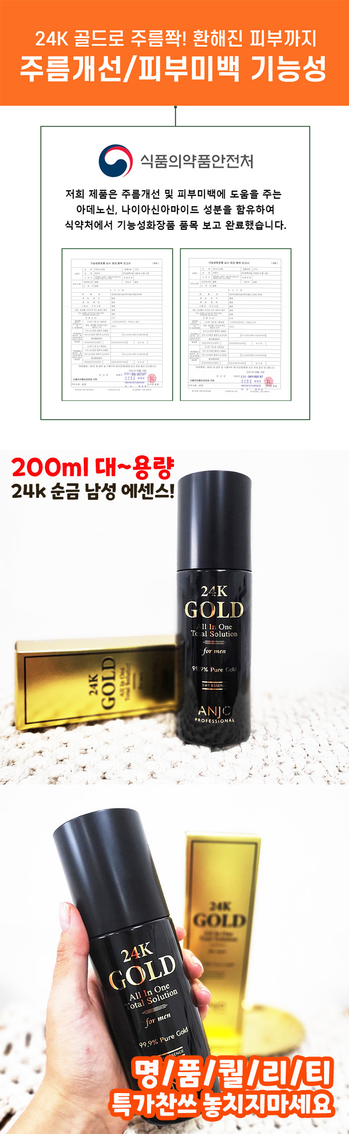 [앙쥬] 24K골드 주름미백 남성 올인원 에센스 200ml