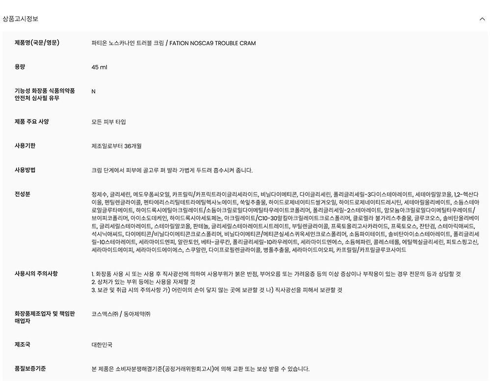 [파티온] 노스카나인 트러블 크림 45ml