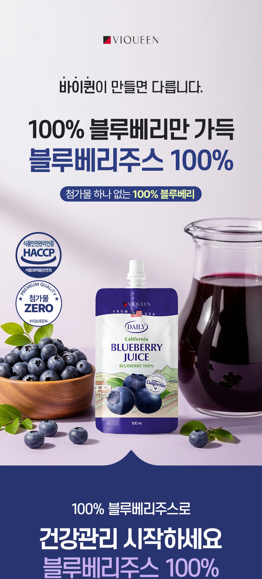 [바이퀸] 데일리 100% 블루베리즙 주스 100mlx30포